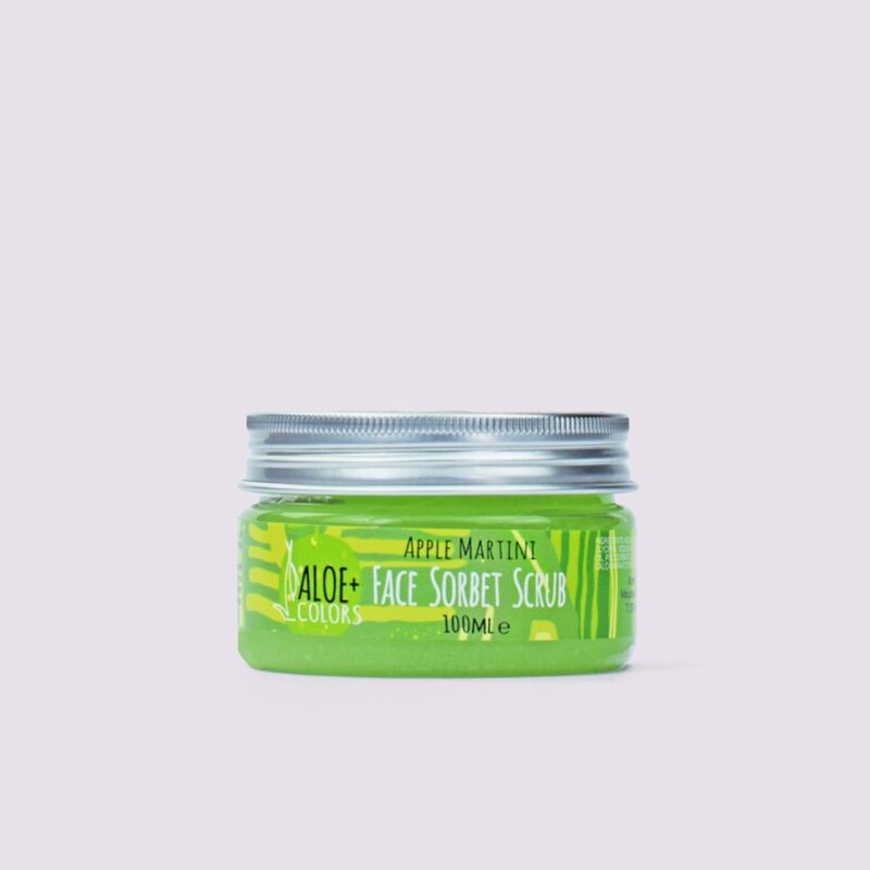 Apple Martini Sorbet Scrub για το πρόσωπο Aloe+Colors για απαλή απολέπιση. Με μοναδική υφή που θυμίζει δροσερή γρανίτα και ξεσηκωτικό άρωμα κοκτέιλ! Η απολέπιση αποτελεί θεραπεία ομορφιάς και δεν πρέπει να λείπει ποτέ από την τακτική περιποίηση του δέρματός σας.